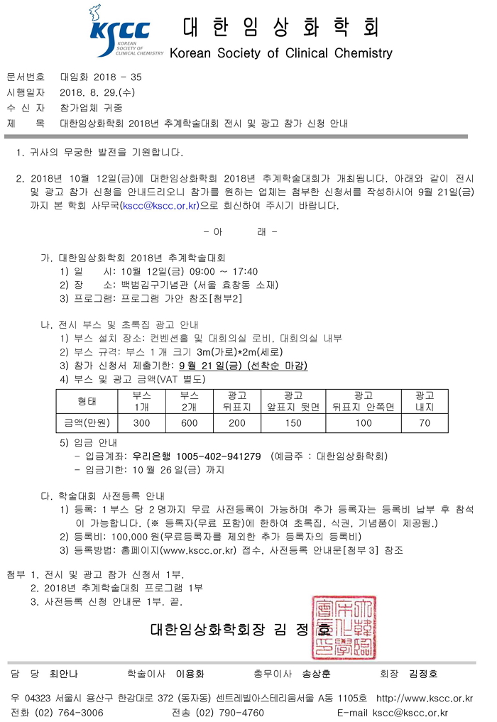 2018년 추계학술대회 전시 및 광고 참가 신청 안내