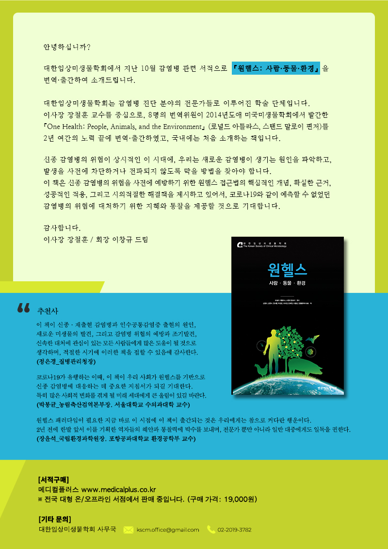 대한임상미생물학회 『원 헬스: 사람·동물·환경』 서적 발간 안내