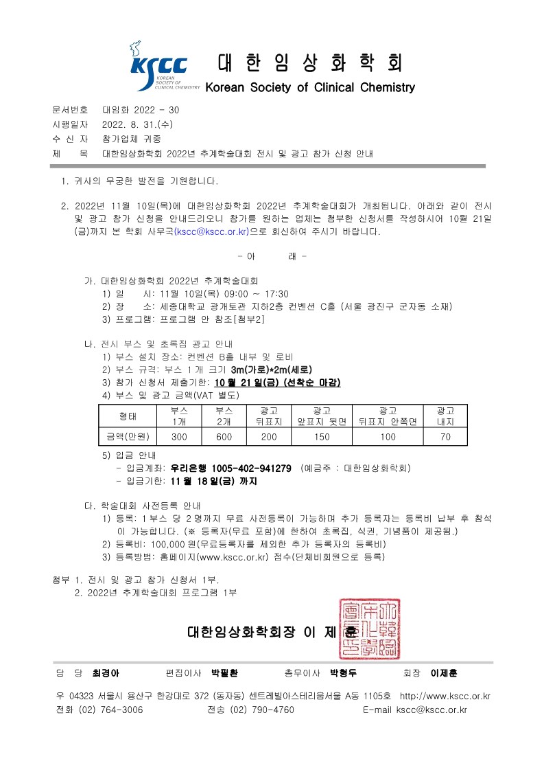 2022년 추계학술대회 전시 및 광고 참가 신청 안내