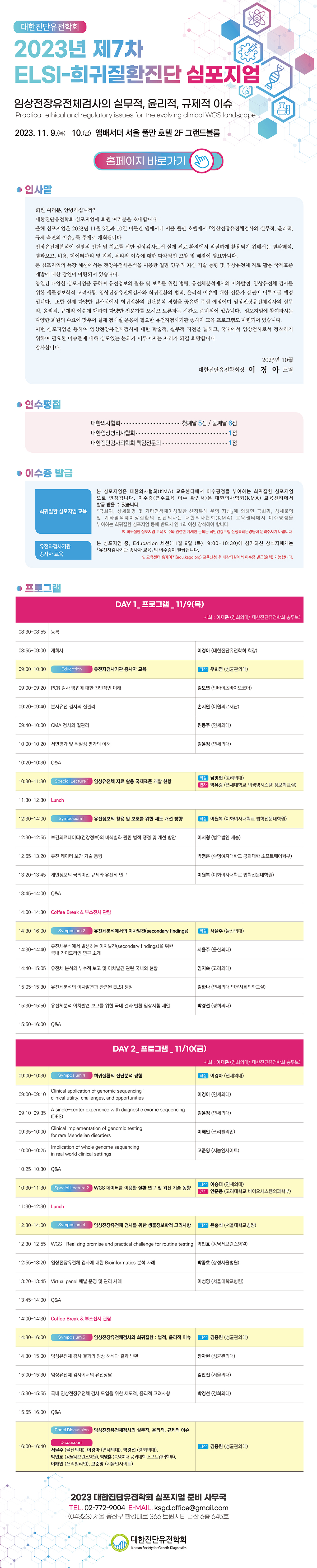 『 대한진단유전학회 2023년 제7차 ELSI-희귀질환진단 심포지엄 』