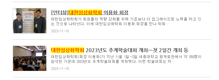 대한임상화학회 2023년 추계학술대회 언론보도 기사
