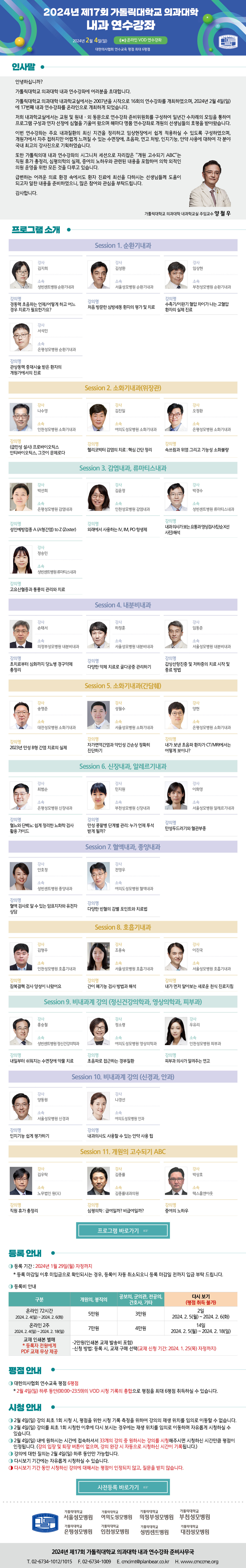 | [가톨릭대학교 연수강좌] 2024년 제17회 가톨릭대학교 의과대학 내과 연수강좌 | |||||