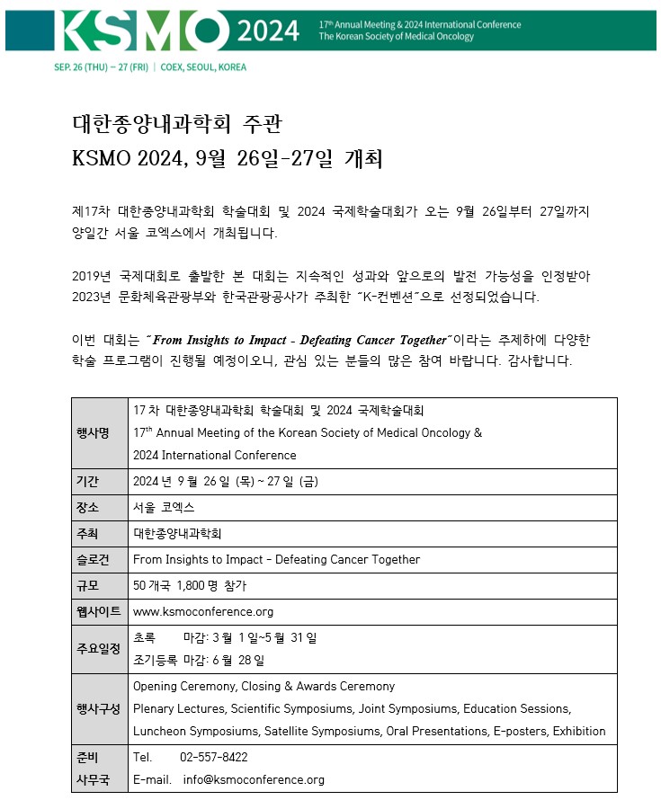 [대한종양내과학회] 제17차 대한종양내과학회 학술대회 및 2024 국제학술대회