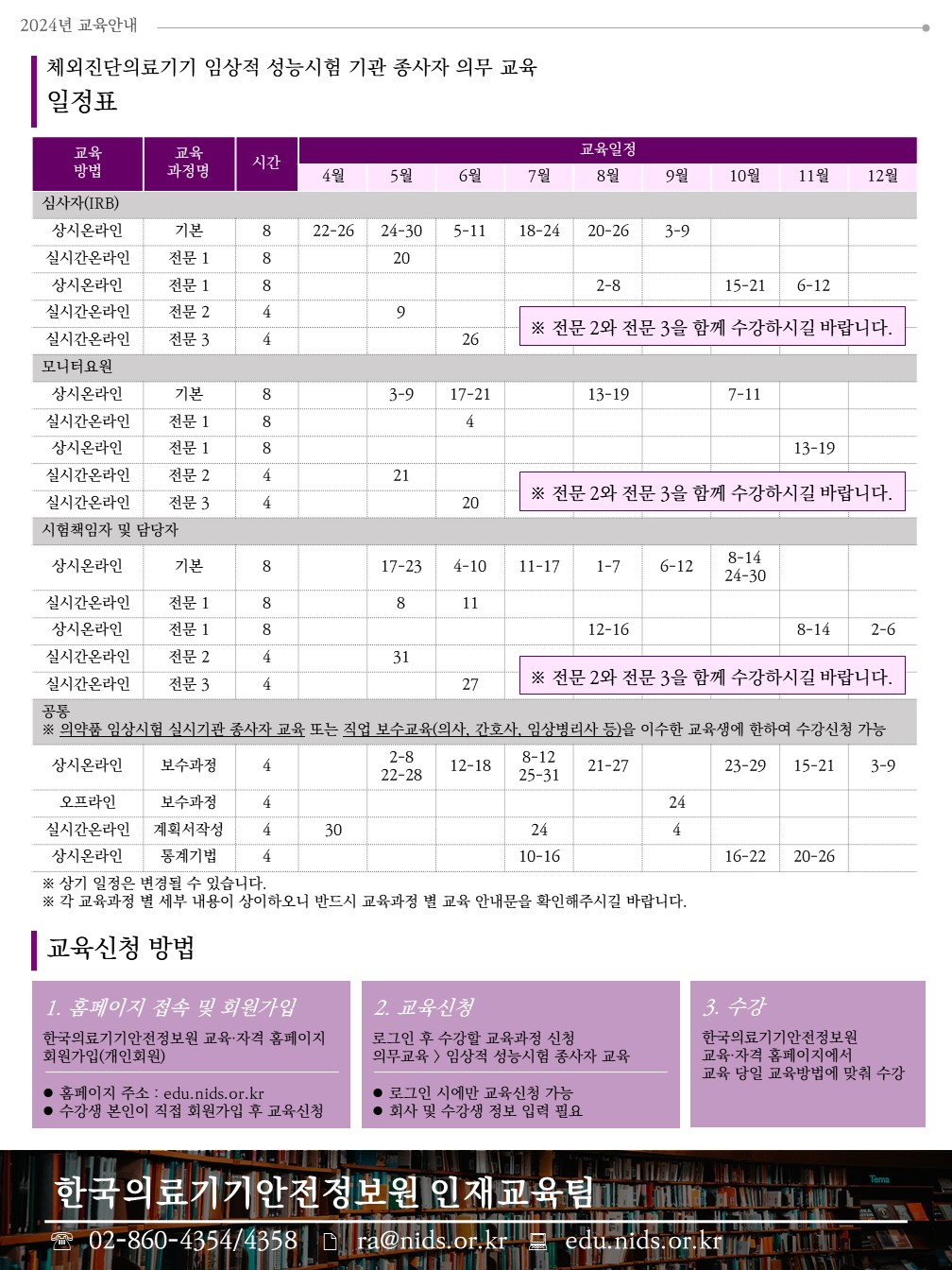 | [한국의료기기안전정보원] 2024년 임상적 성능시험 종사자 교육 연간 일정 안내 | |||||