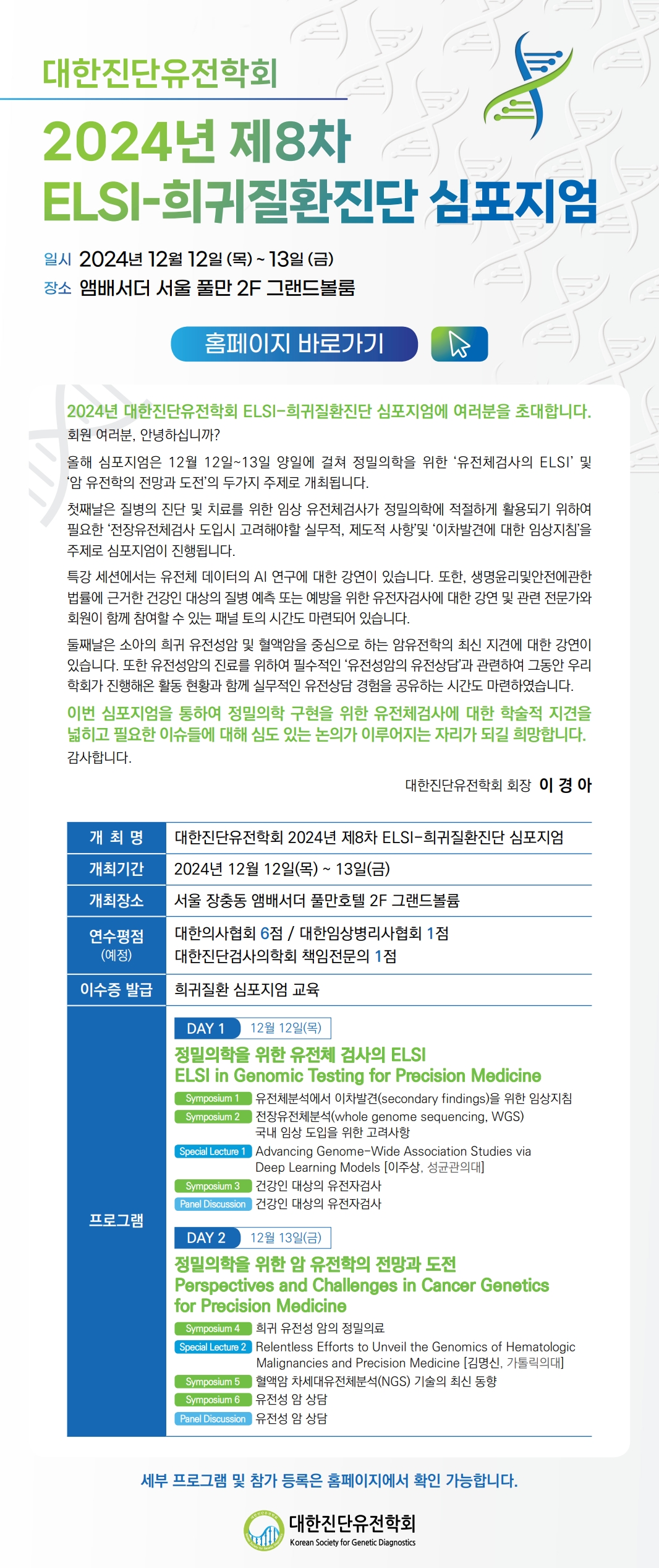[대한진단유전학회] 2024년 제8차 ELSI-희귀질환진단 심포지엄 안내