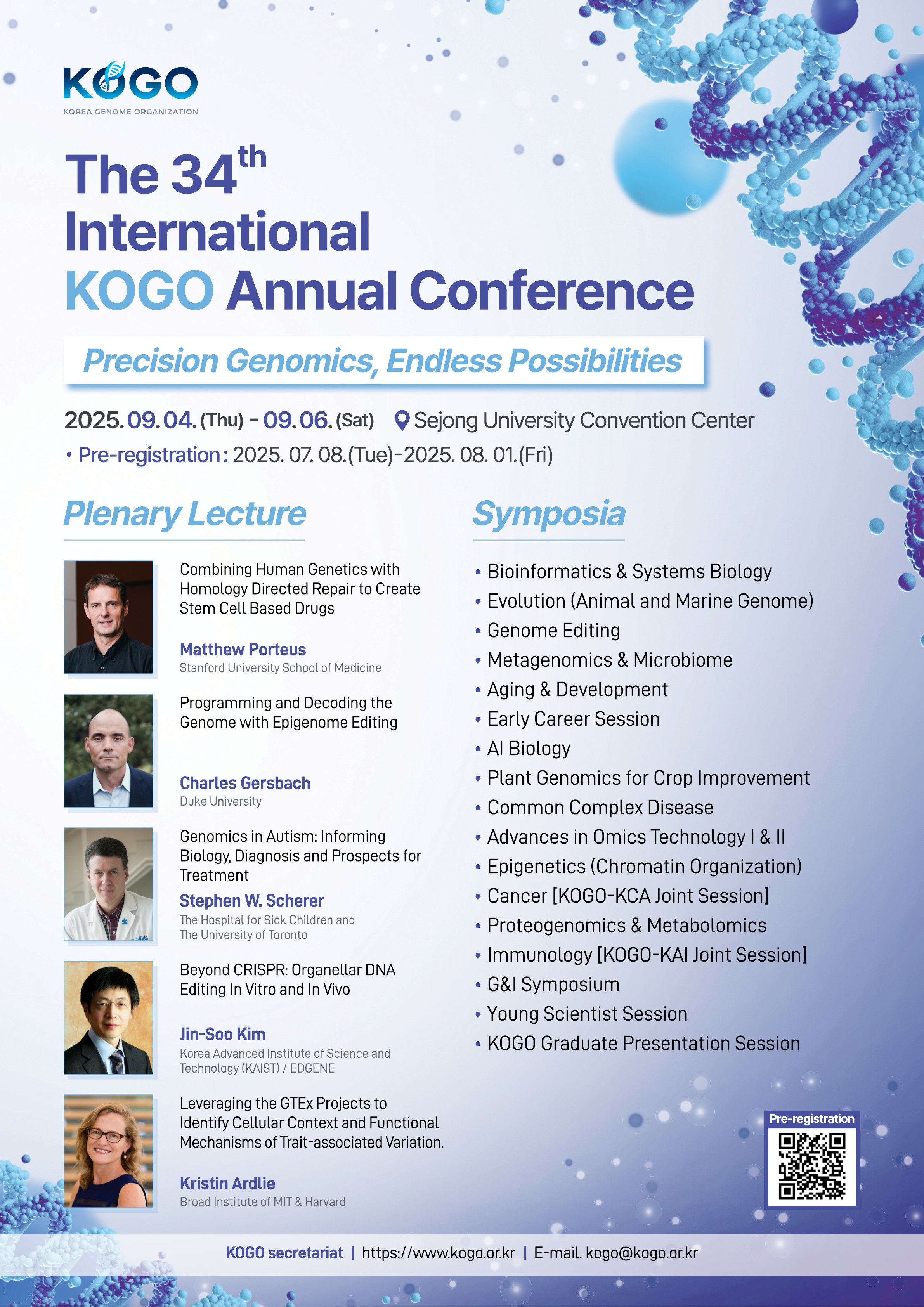 | [한국유전체학회] 제34회 정기학술대회 안내 | |||||
