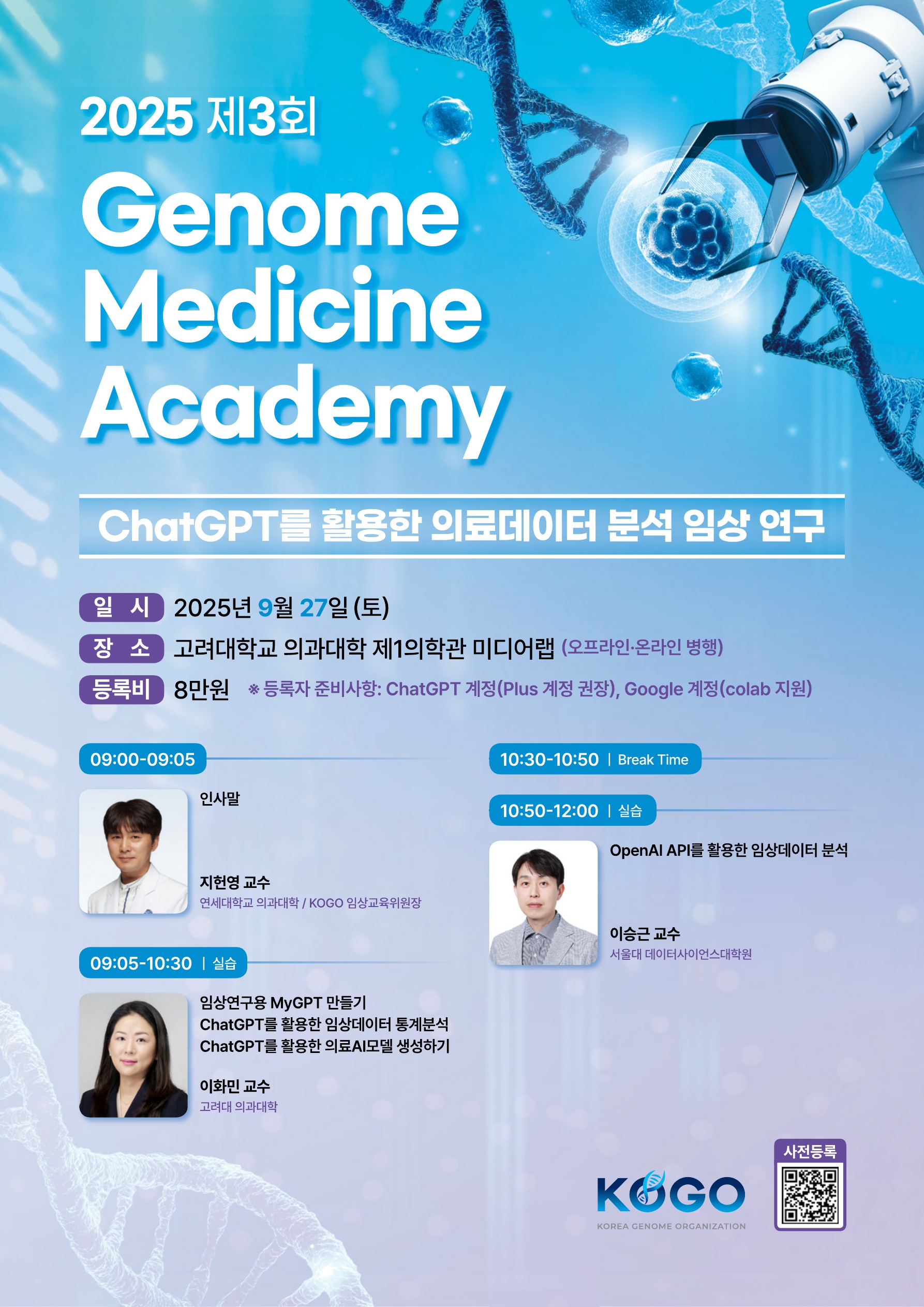 | [한국유전체학회] 2025 제3회 Genome Medicine Academy | |||||