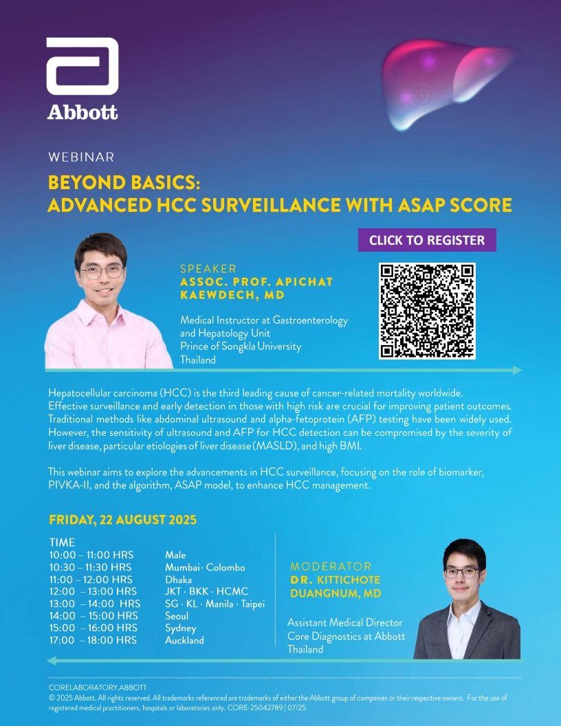 한국애보트에서 HCC biomarker 인 AFP/PIVKA-II 를 활용한 ASAP algorithm 을 주제로 웨비나를 진행하고자 합니다.