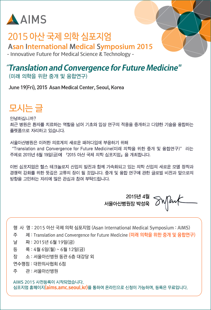 「2015 아산 국제 의학 심포지엄」 개최 안내