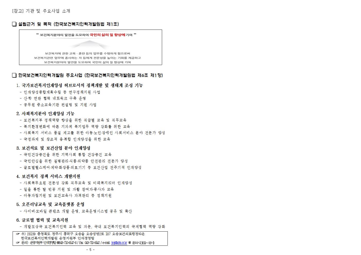 (한국보건복지인력개발원) 감염병 분야 교수직 직원채용 공고